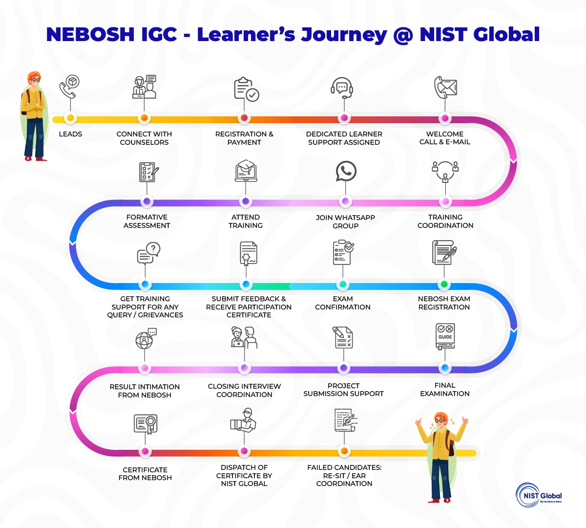NIST Global is a leading provider of IOSH Managing Safely in India, offering high-quality animated graphics and presentation materials, delivered by expert trainers who provide comprehensive support throughout the course.